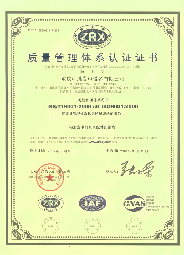 質(zhì)量管理體系認(rèn)證證書