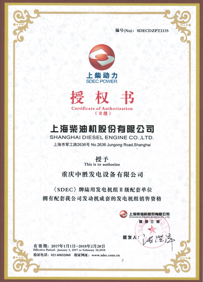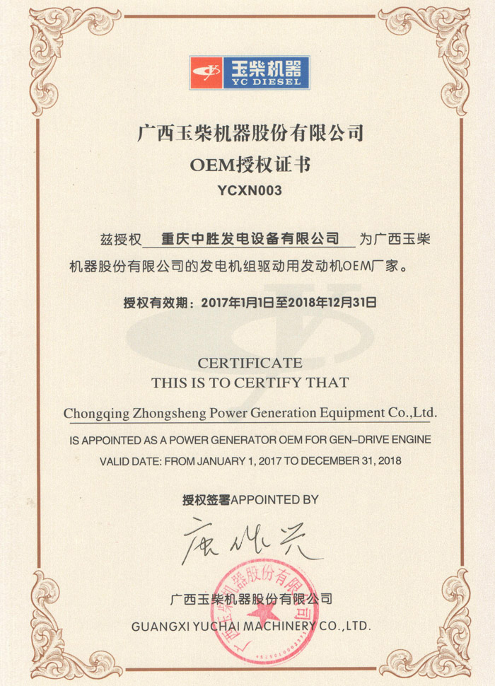 廣西玉柴授權(quán)證書