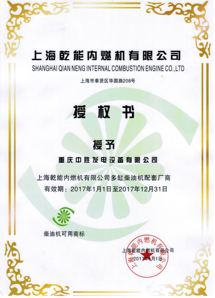 上海乾能授權(quán)證書
