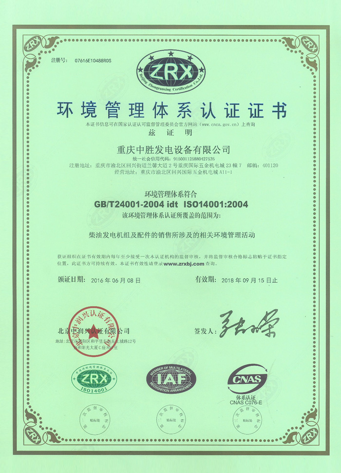環(huán)境管理體系認(rèn)證證書
