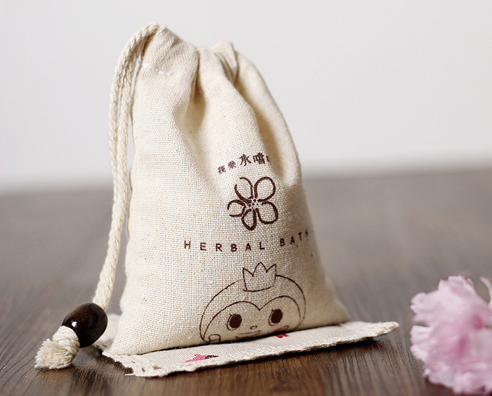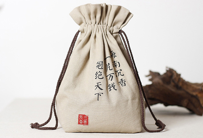 才袋采用的是8安坯布制作而成兩端具木扣,采用的是絲網(wǎng)印,印刷而成的一種束口袋